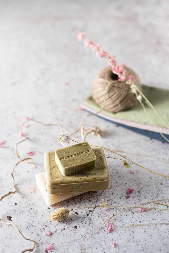 Jabones con ingredientes naturales, algunos cultivados con mis propias manos, champús y acondicionadores sólidos.
