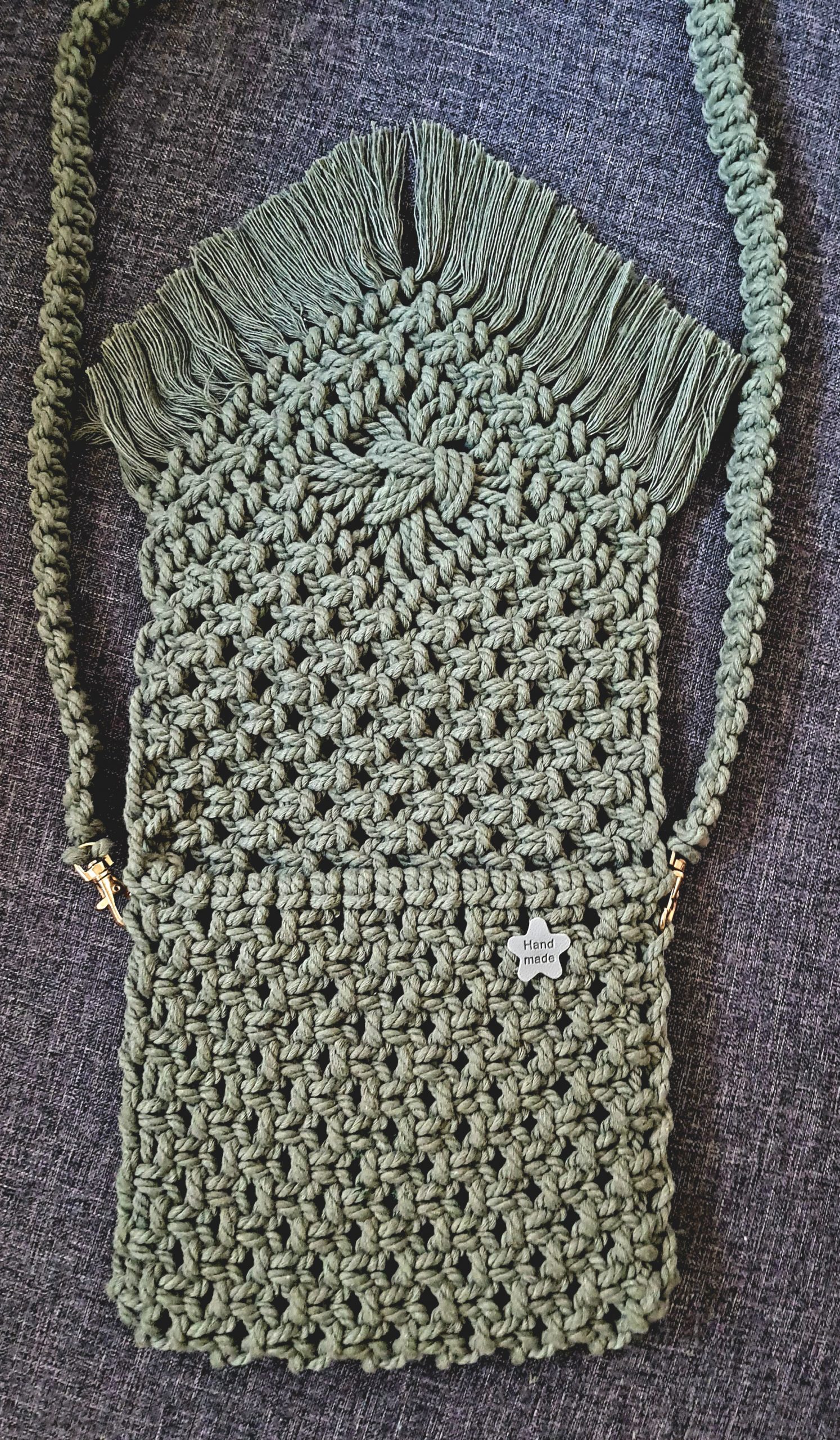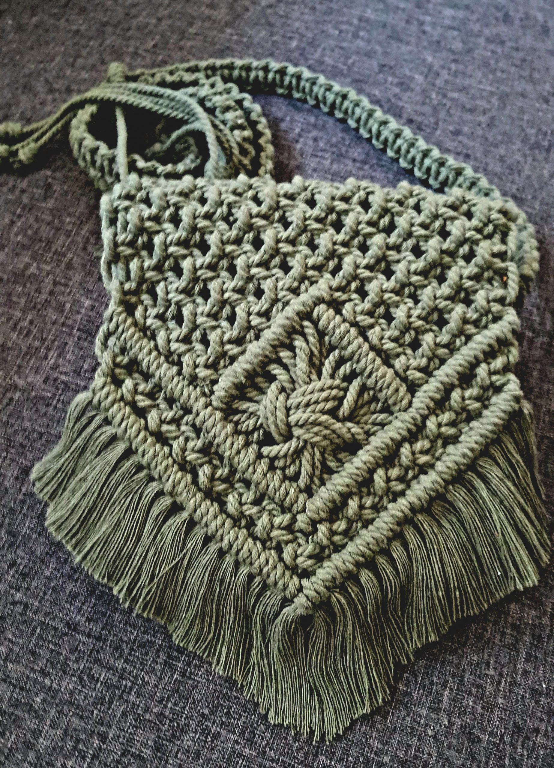 Bolso boho de macramé verde – Artesanal y hecho a mano en España