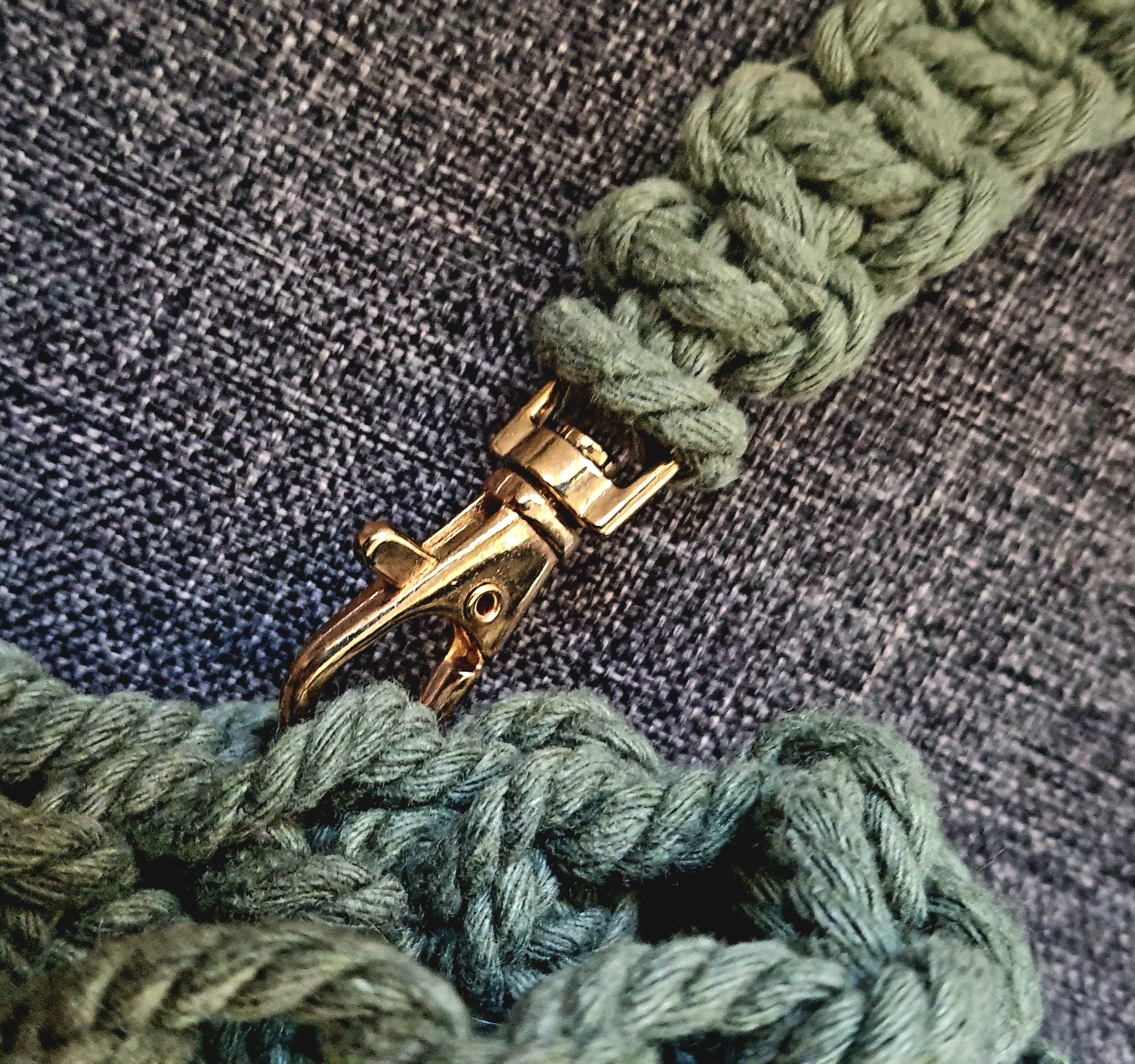 Este bolso boho de macramé verde en está elaborado a mano de forma totalmente artesanal en Barcelona, España, utilizando cuerda de algodón 100%. Su diseño ligero, resistente y natural lo convierte en el complemento ideal para quienes buscan un estilo bohemio, auténtico y sostenible.